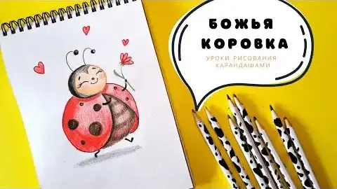 Как нарисовать красивый рисунок цветными карандашами / Рисуем БОЖЬЮ КОРОВКУ /Уроки рисования