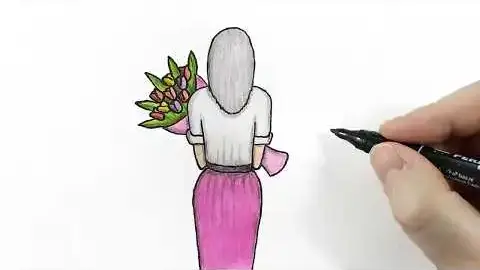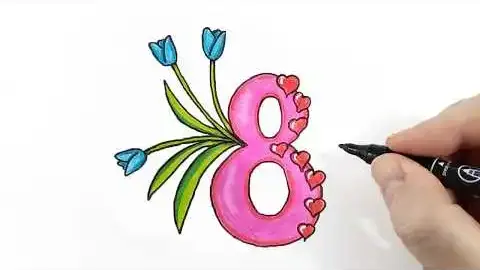 Легкий рисунок на 8 Марта, Шаг за шагом