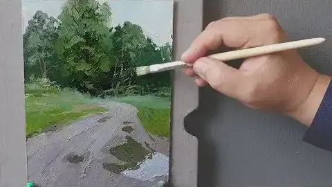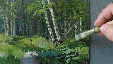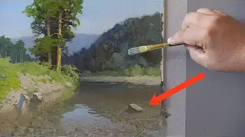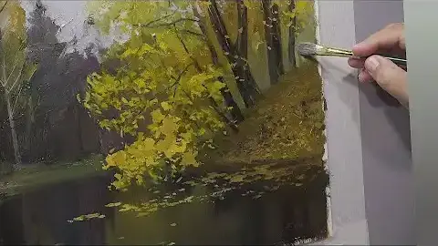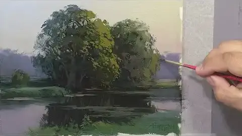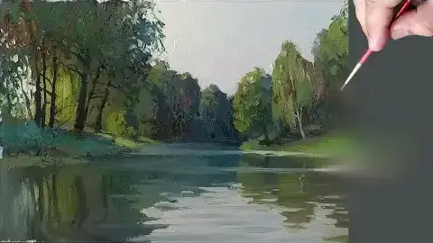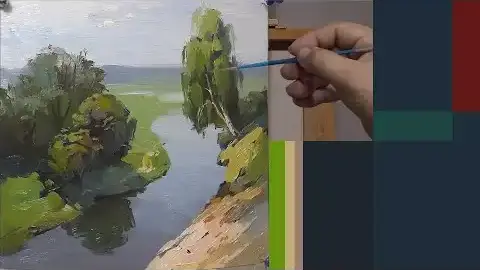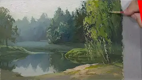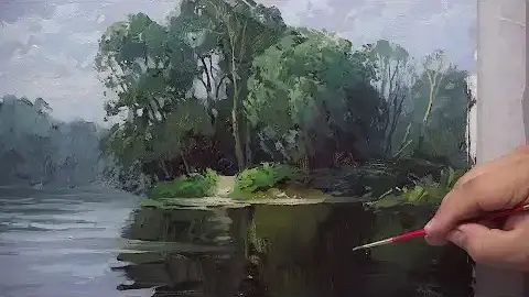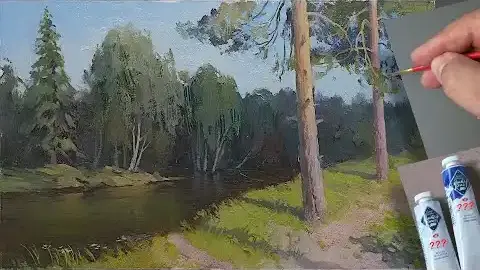Живопись маслом: отражение в неглубокой реке. Процесс работы на мольберте и палитре