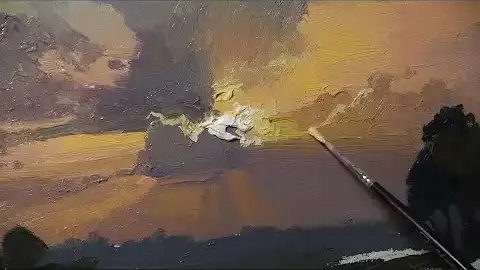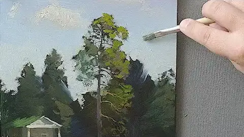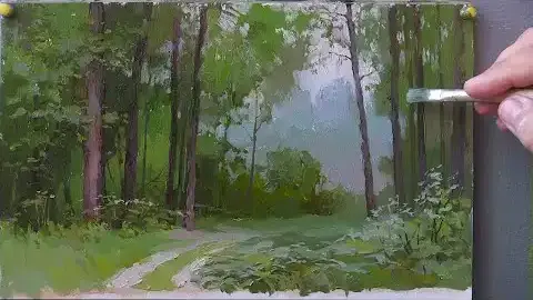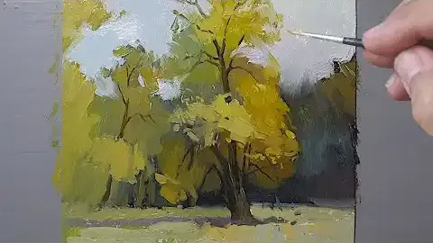 Передаю яркость солнца в живописи. Процесс работы над пейзажем